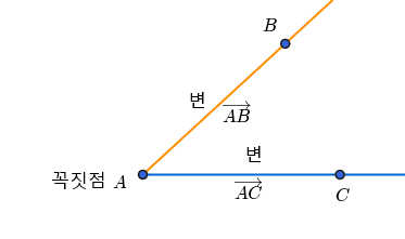 1. 각에서 두 반직선이 만나는 점 또는 평면 도형에서 두 변이 만나는 점