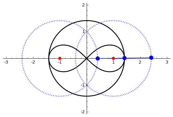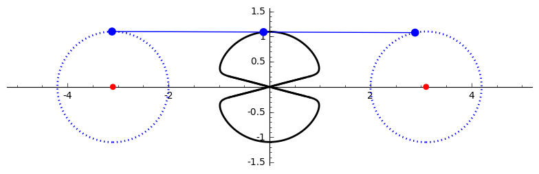 이 곡선은 중심이 $(\pm a, 0)$이고 반지름 $b$인 두 원에 의해 만들어진다. 길이 $2c$의 선분의 끝점이 두 원 위에서 움직일 때, 선분의 중점은 와트 곡선을 그린다.